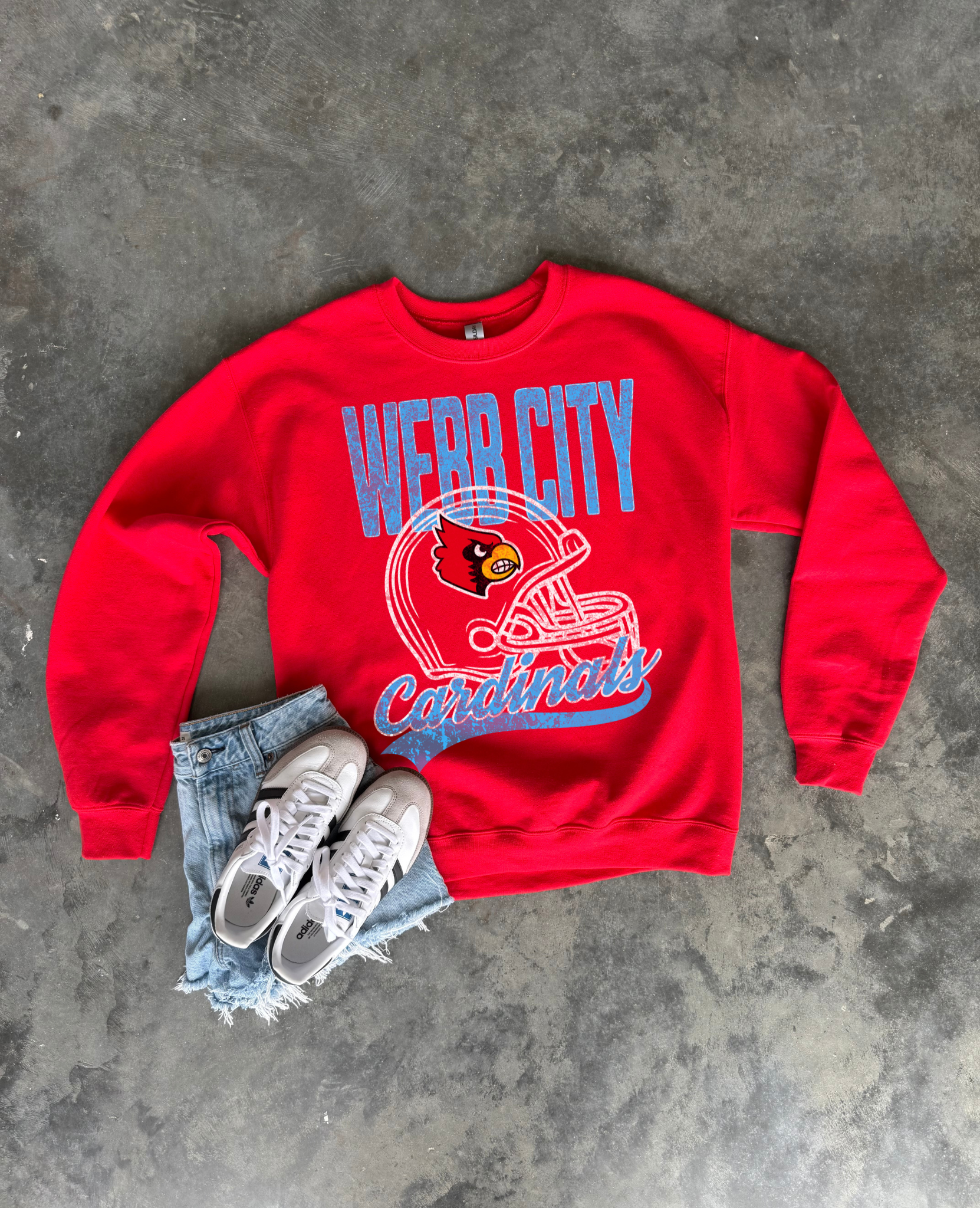 DTF printed on a red Gildan (or similar) crewneck unisex true to size. Size up one or 2 for oversized